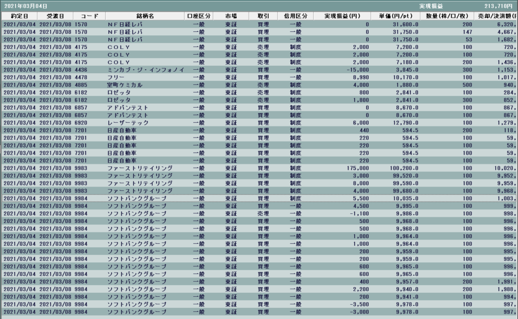 おととい(火曜)のファストリ大陰線を気にしていたところに、昨日の米株はテスラやネットフリックス、ズームなどこれまで米株相場をけん引していた面々が大きく下げて帰ってきたことから、珍しくファストリを手掛けた。今日はこれがすべて。全商品値下げのニュースも重なったことでギャップダウンしたけど、そこからさらに下押ししたことで後場寄り付近までひっぱって利確。前場手掛けた他の銘柄はファストリに集中するために早めの利確・撤退。昨日ド派手にやられたIPOは反省から一日休憩。室町をはじめ活況だったが、後場にファストリ終えてから少し触った程度。
