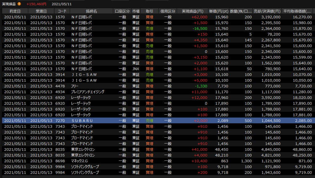 5/12(水)きちんと巻き込まれる<デイトレ結果> 2021.05.12