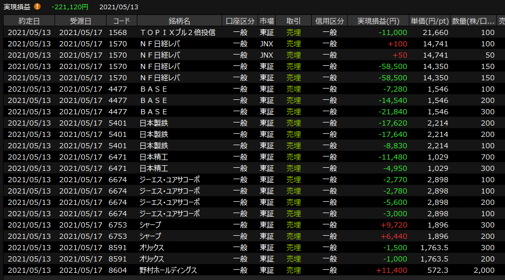 5/12(水)きちんと巻き込まれる<デイトレ結果> 2021.05.12