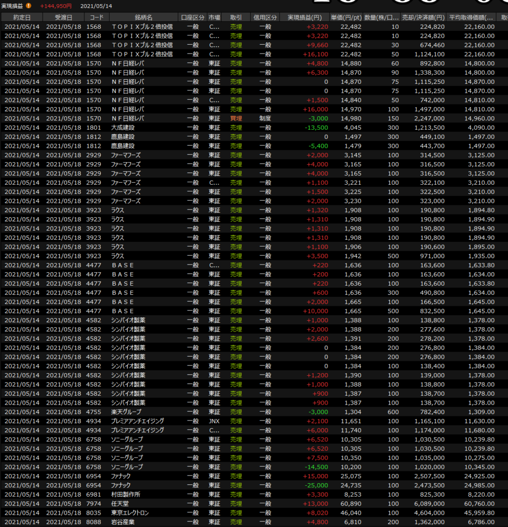 5/13(木)ごめんなさい<デイトレ結果> 2021.05.13