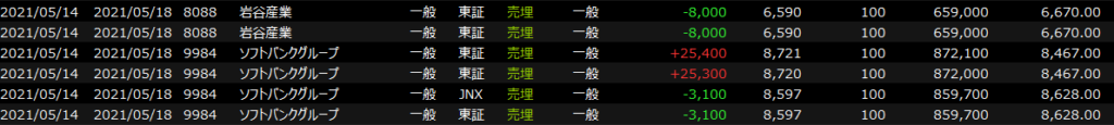 寄り付きから飛ばす銘柄は飛ばしていましたので、全てロングで入りました。ポジションをほとんど閉じていた後場が案外強くてここはほとんど取れませんでしたが、ひとまず5月の負けをちゃらにできたので月後半仕切り直します。1812鹿島・1801大成・8088岩谷の場中決算プレイはやるんじゃなかった。