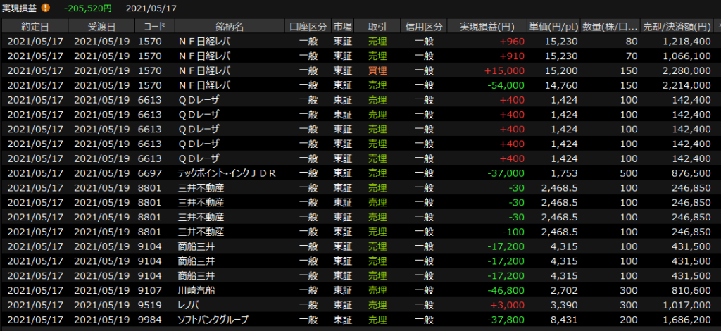 5/18(火)こんな日でも負けるとは<デイトレ結果> 2021.05.18