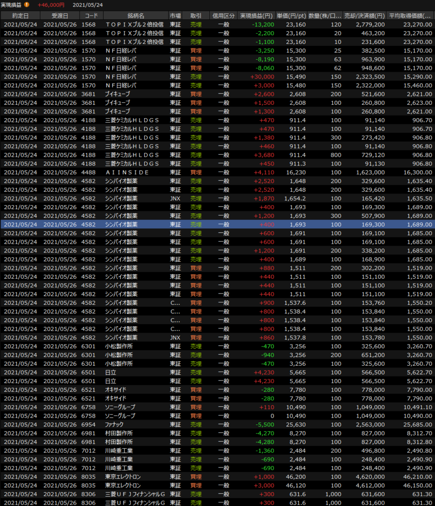 5/21(金)ロングで負ける<デイトレ結果> 2021.05.21