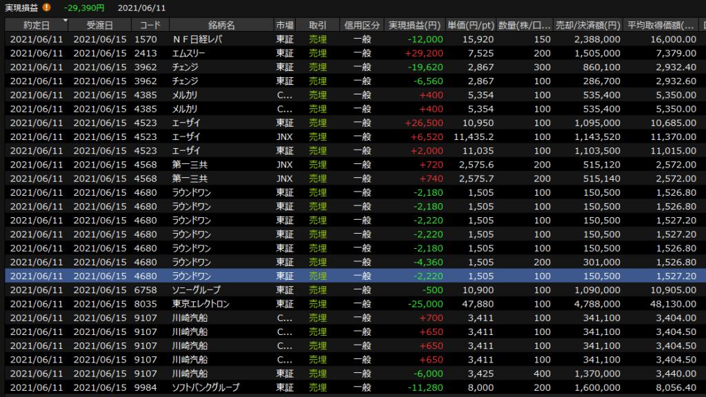 6/14(月)エムスリー復活か<デイトレ結果> 2021.06.14