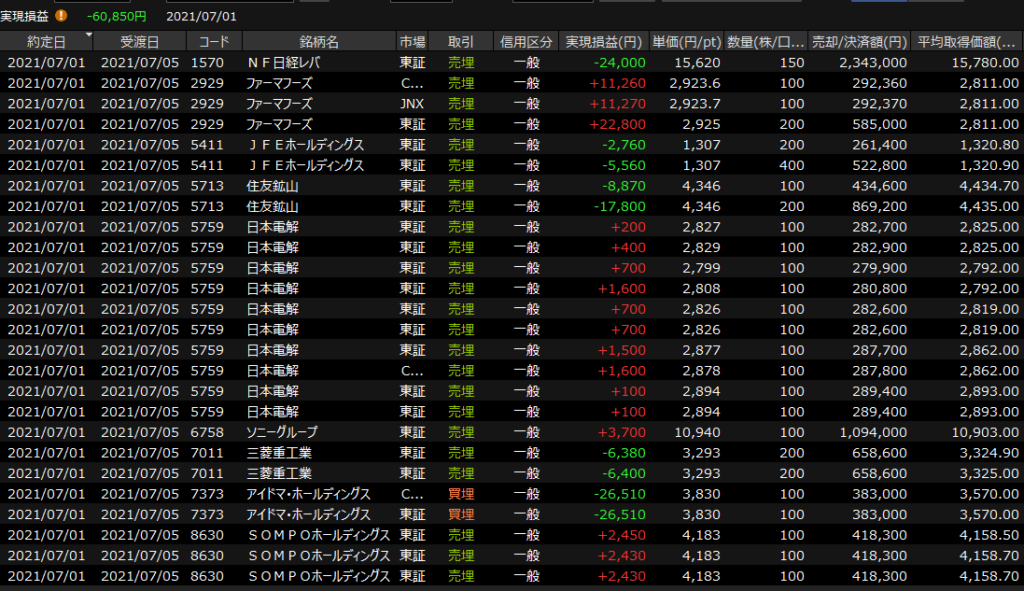 7/2(金)IPOは勝てない<デイトレ結果> 2021.07.02