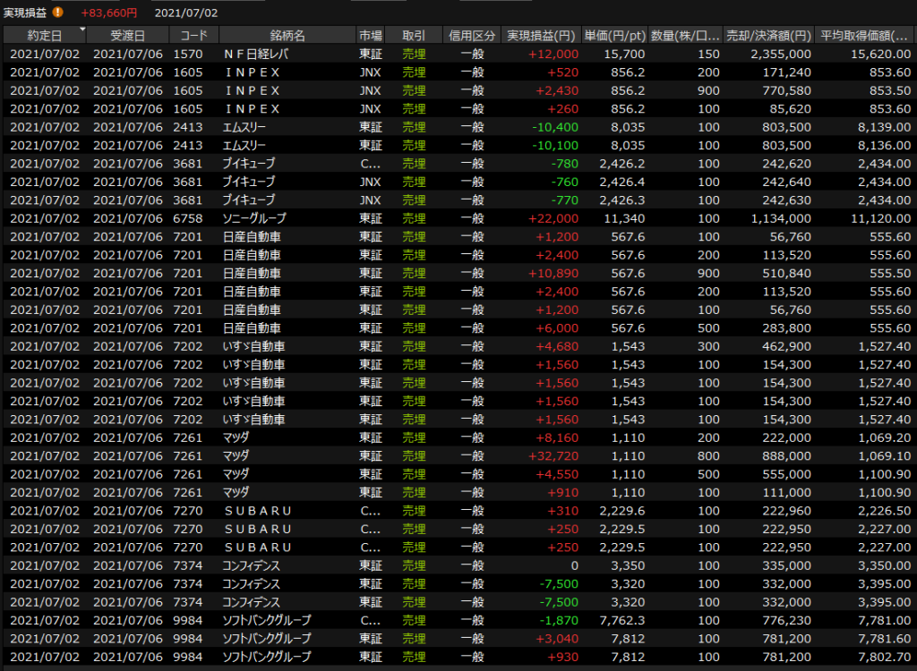 7/5(月)IPO祭り・・・<デイトレ結果> 2021.07.05