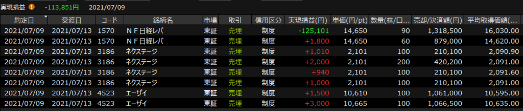 7/8(木)もうやだ<デイトレ結果> 2021.07.08