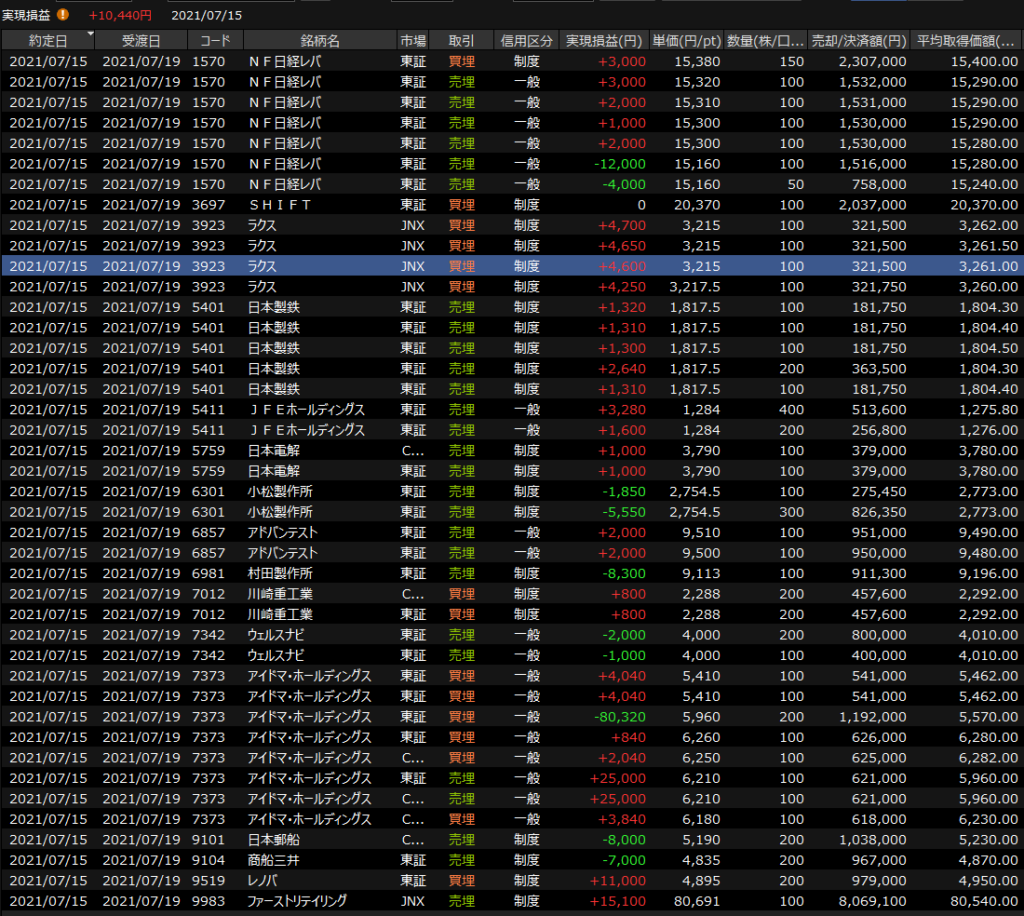 7/14(水)伸びない<デイトレ結果> 2021.07.14