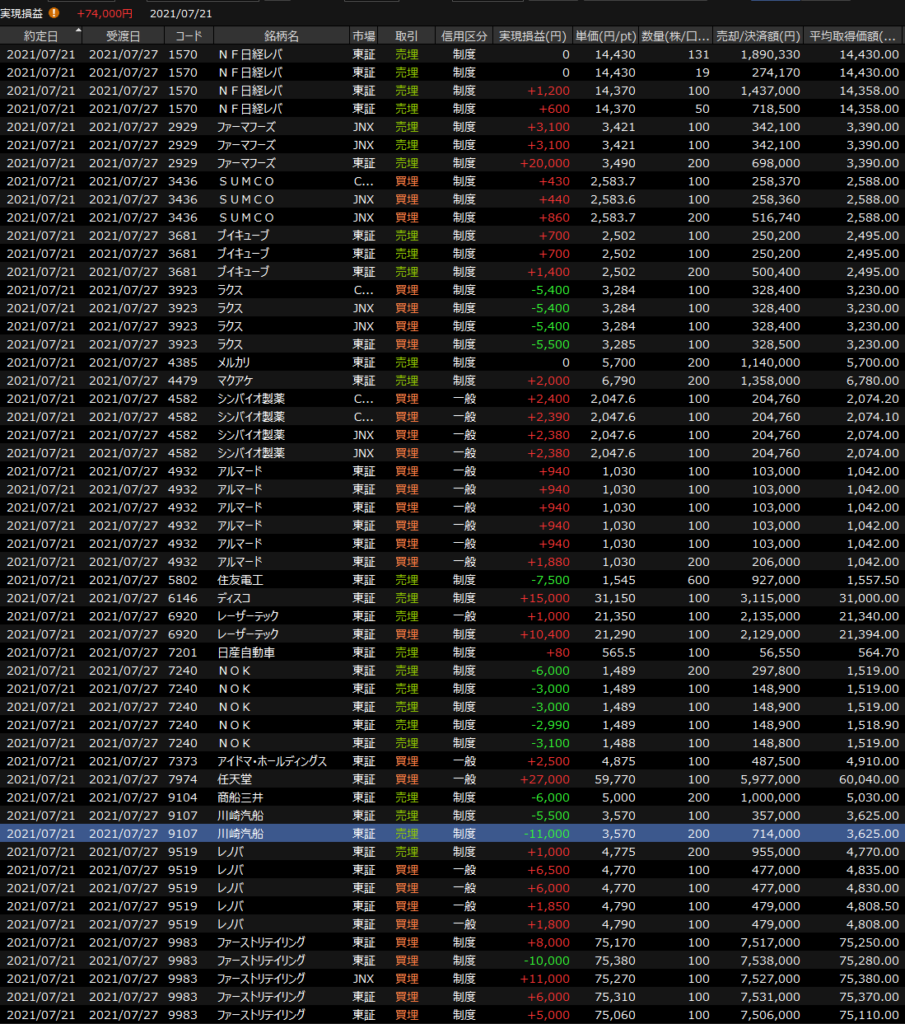 7/26(月)しっかり負ける<デイトレ結果> 2021.07.26