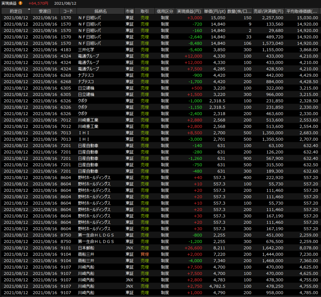 8/13(金)メルカリで事故る<デイトレ結果> 2021.08.13
