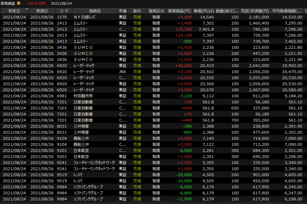 8/23(月)意外高<デイトレ結果> 2021.08.23
