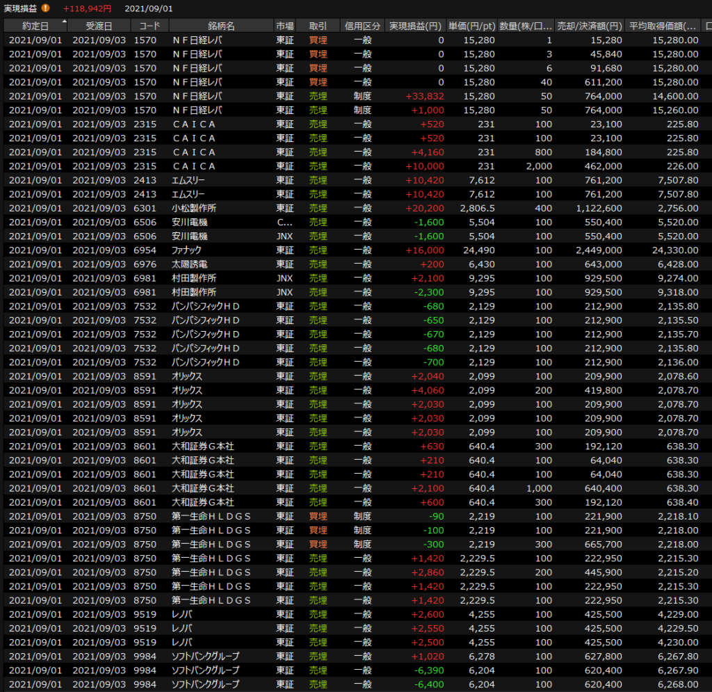 9/2(木)利食い優勢<デイトレ結果> 2021.09.02