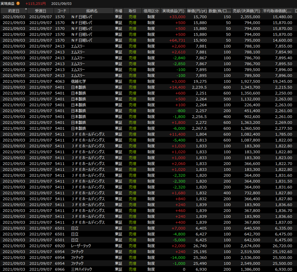 9/2(木)利食い優勢<デイトレ結果> 2021.09.02