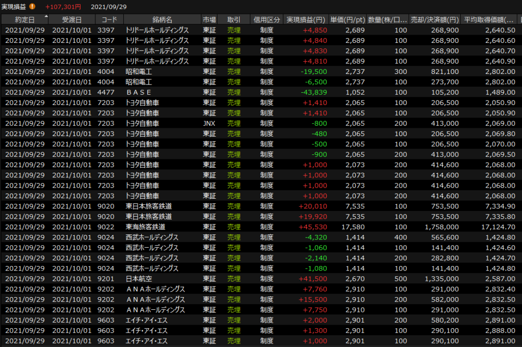 9/30(木)日経銘柄入れ換え<デイトレ結果> 2021.09.30