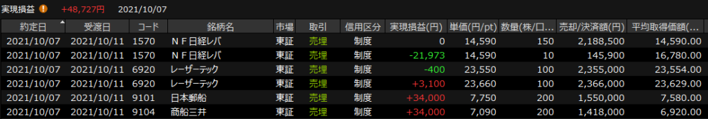 10/8(金)勝てない<デイトレ結果> 2021.10.08