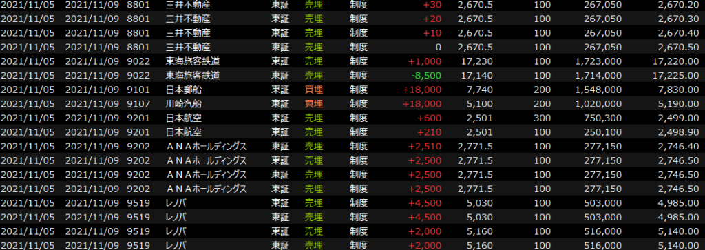 11/8(月)海運だけ<デイトレ結果> 2021.11.08