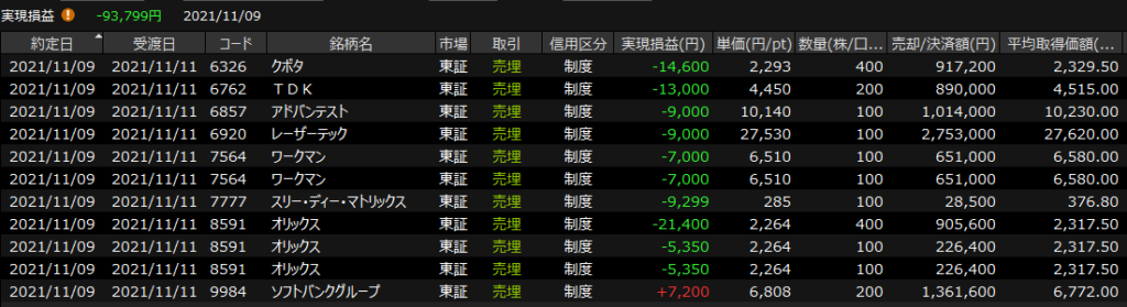 11/10(水)今日も弱い<デイトレ結果> 2021.11.10