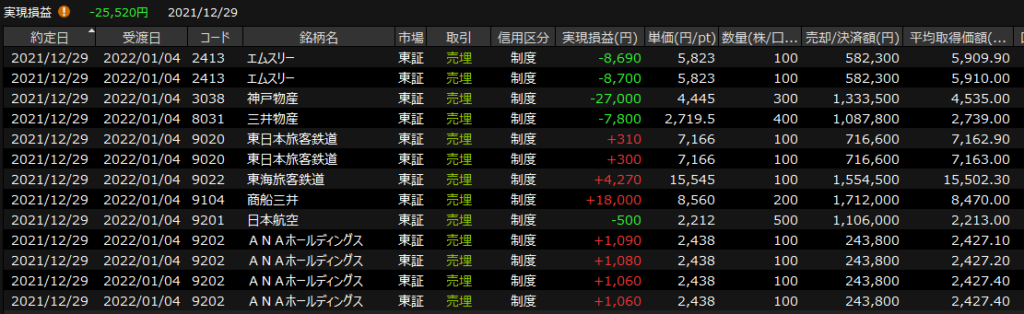 12/30(木)大納会6連敗<デイトレ結果> 2021.12.30