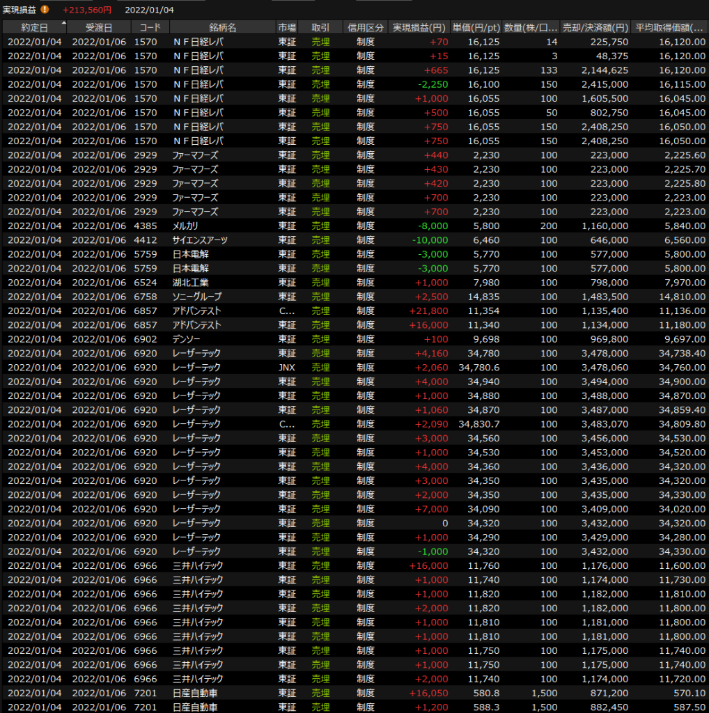 1/5(水)新興崩壊すぎる<デイトレ結果> 2022.01.05