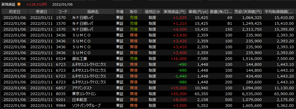 1/7(金)マイ転とか…。<デイトレ結果> 2022.01.07