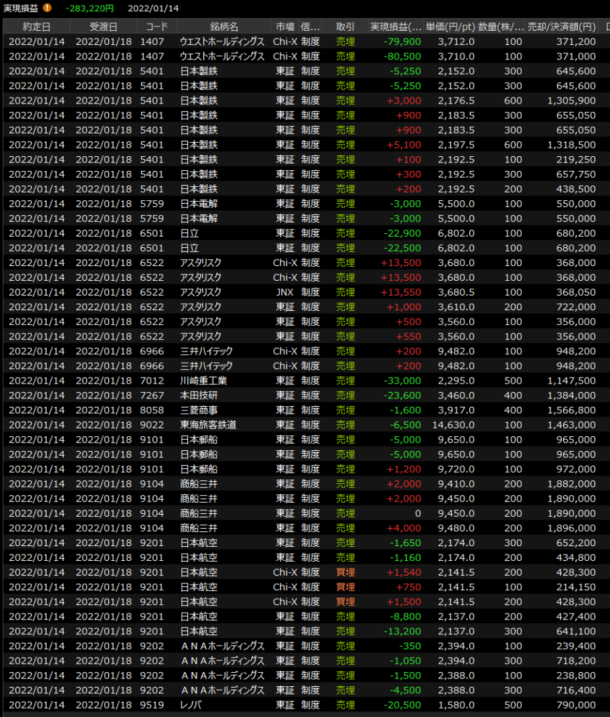 1/13(木)厳しい<デイトレ結果> 2022.01.13