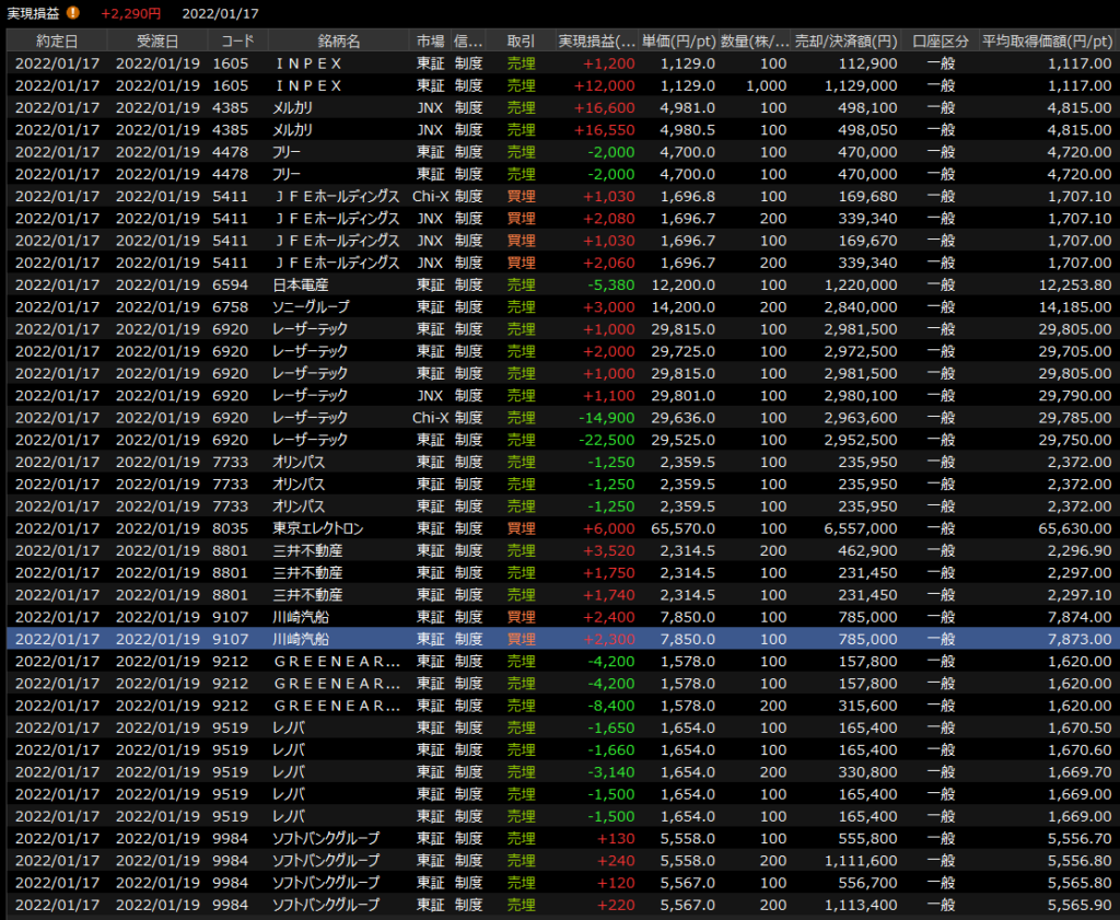 1/14(金)盛大に事故って大敗<デイトレ結果> 2022.01.14