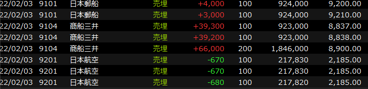 2/2(水)4日続伸<デイトレ結果> 2022.02.02