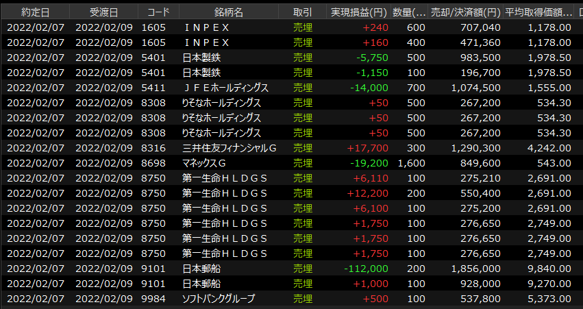 2/4(金)昨日の逆<デイトレ結果> 2022.02.04