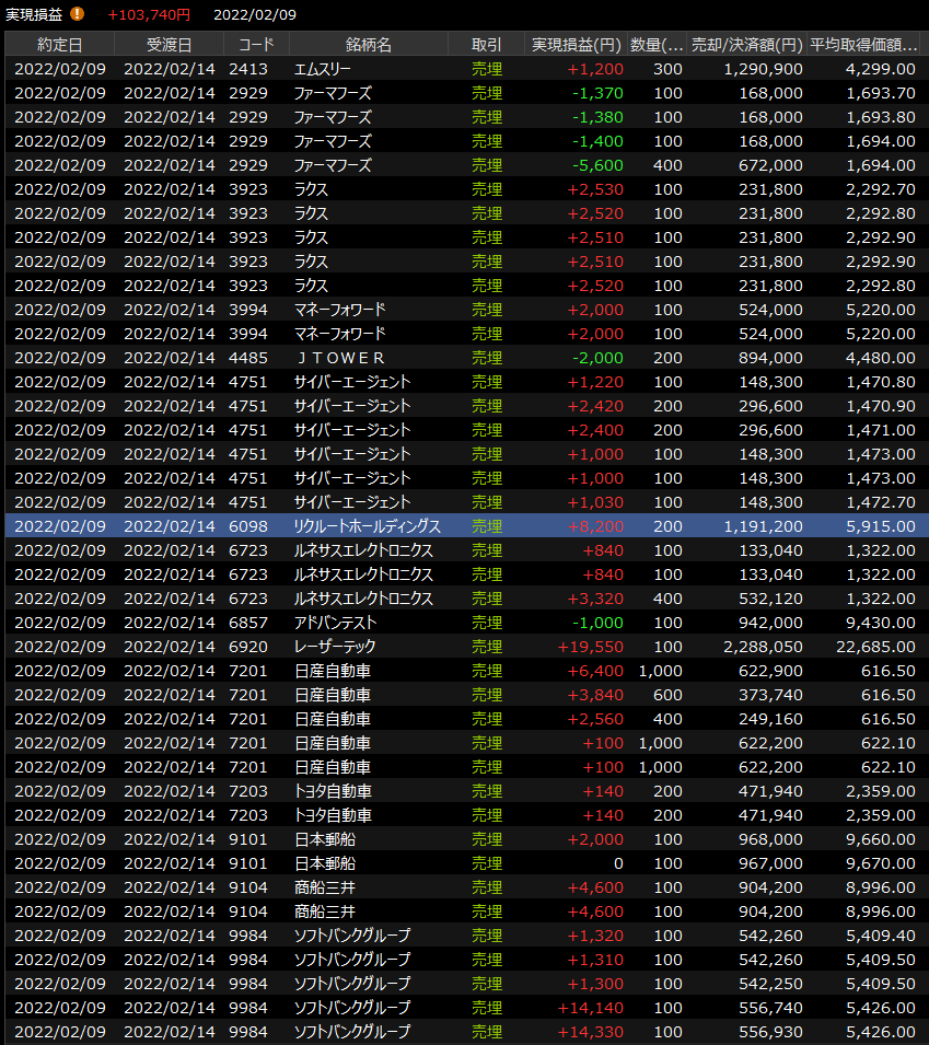 2/8(火)うまくいかない<デイトレ結果> 2022.02.08