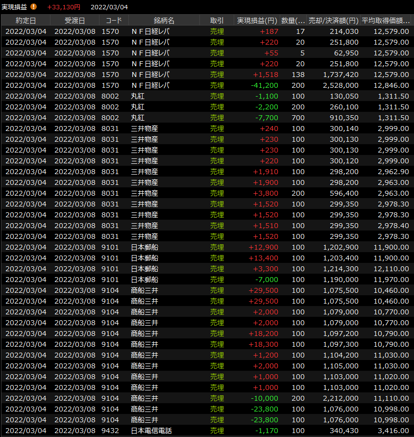 3/3(木)やっと海運<デイトレ結果> 2022.03.03