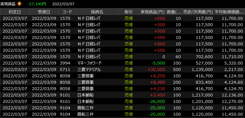 3/8(火)再起難しい<デイトレ結果> 2022.03.08