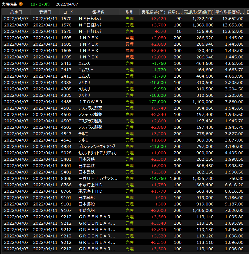 4/8(金)力なく<デイトレ結果> 2022.04.08