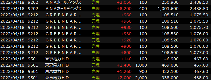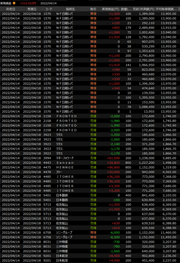4/15(金)東京強い<デイトレ結果> 2022.04.15