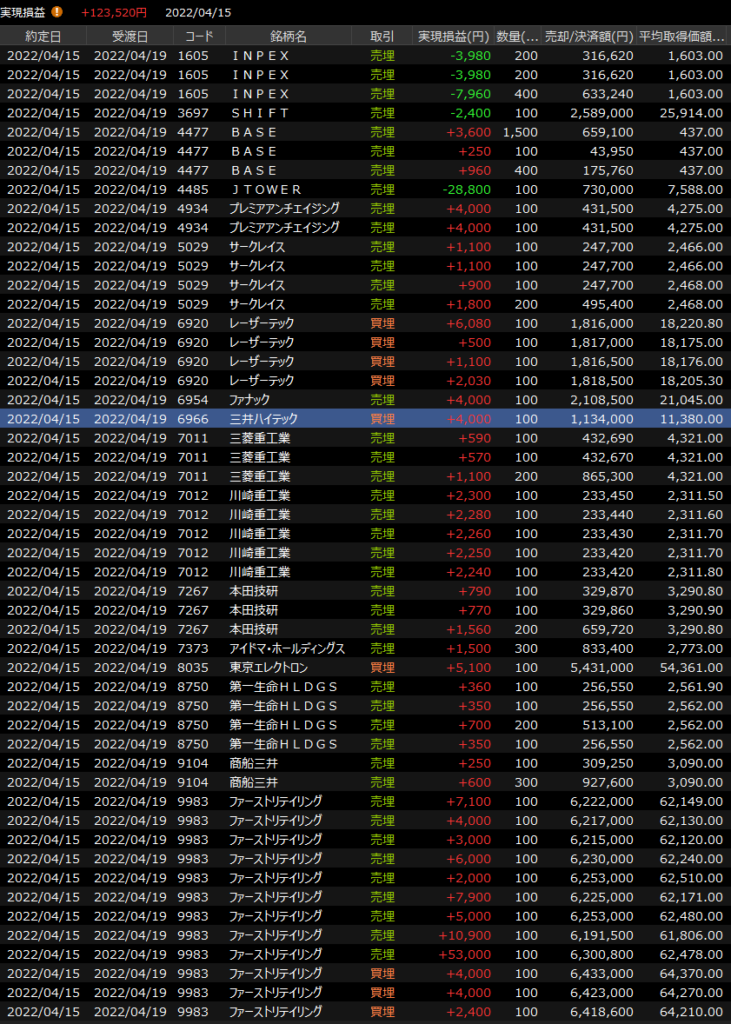 4/14(木)グロース伸びず<デイトレ結果> 2022.04.14