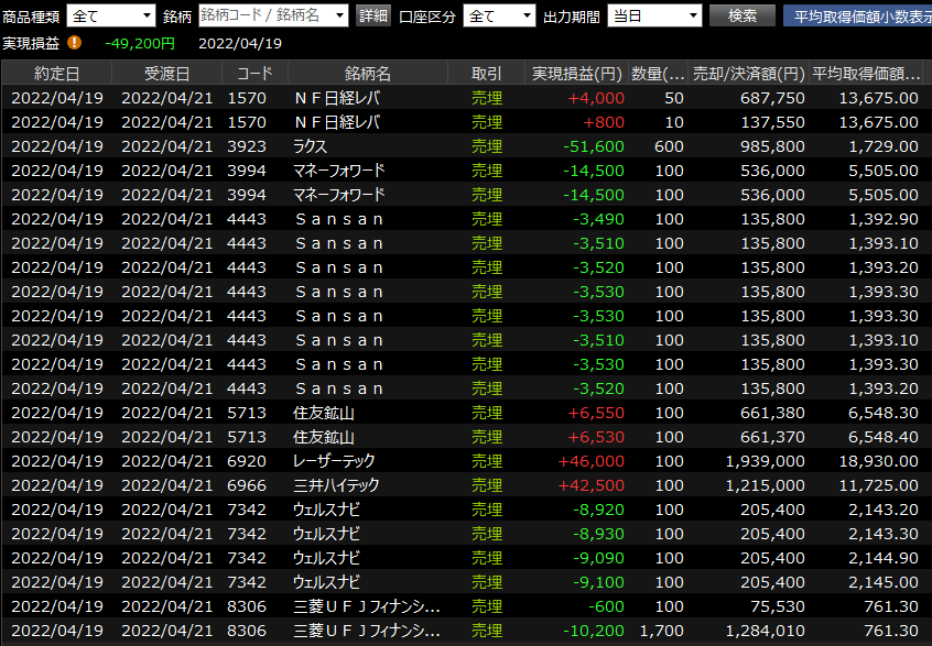 4/20(水)繰り返す過ち<デイトレ結果> 2022.04.20
