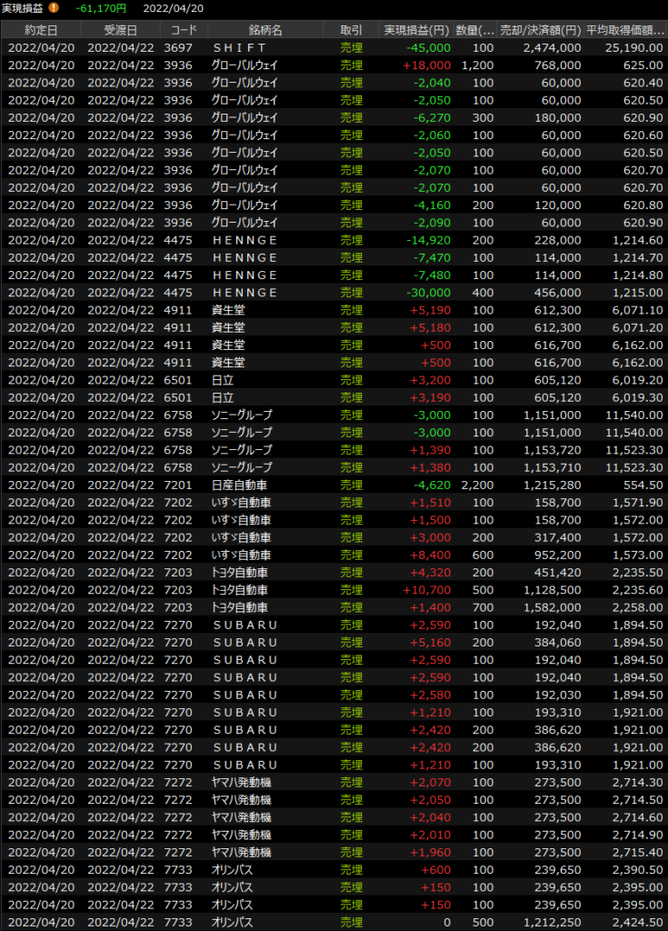 4/19(火)グロース系で負ける<デイトレ結果> 2022.04.19