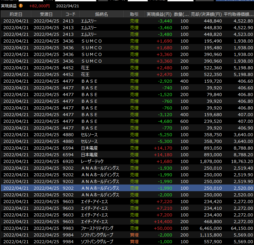 4/20(水)繰り返す過ち<デイトレ結果> 2022.04.20