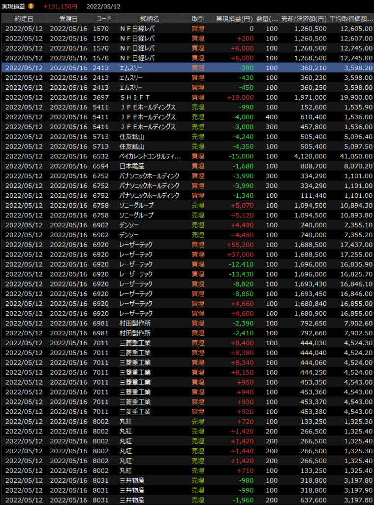 5/12(木)リスクオフ<デイトレ結果>