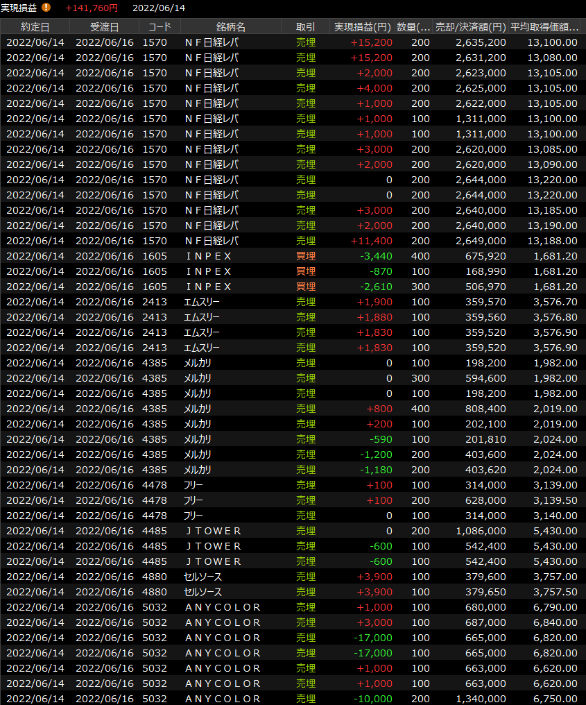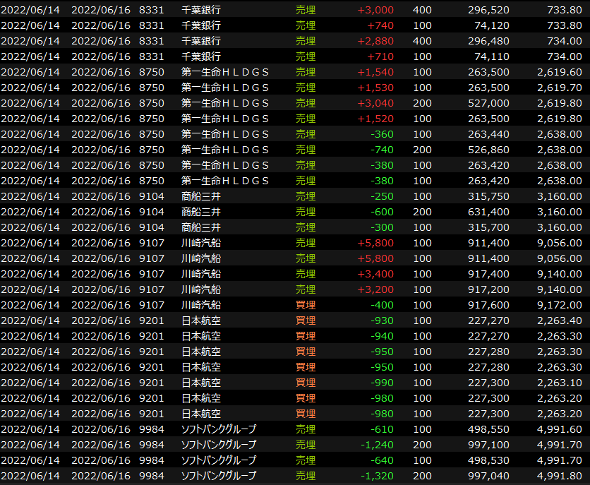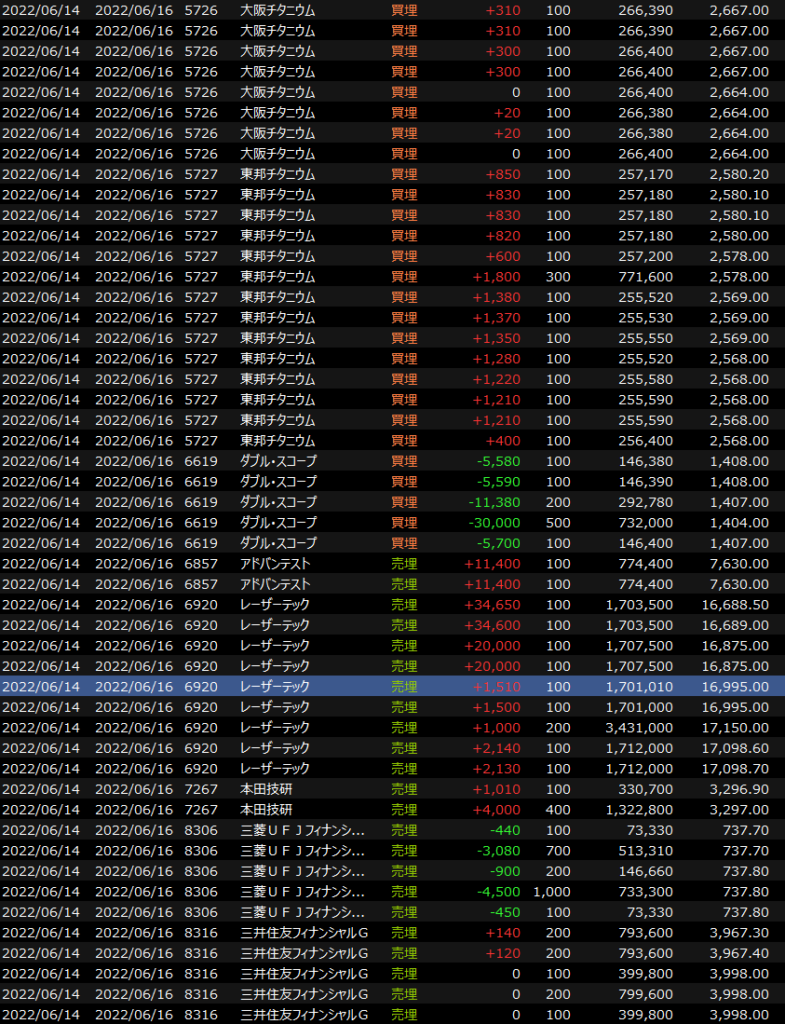 6/13(月)崩壊<デイトレ結果> 2022.06.13