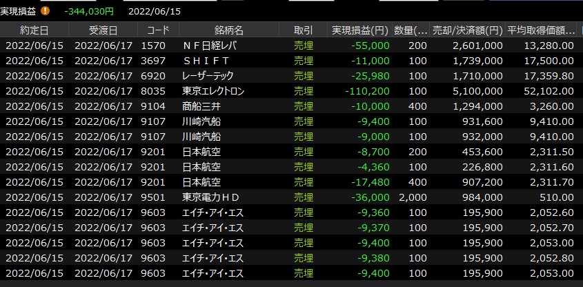 6/16(木)絶望<デイトレ結果> 2022.06.16