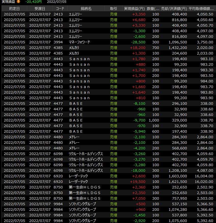 7/4(月)もう無理<デイトレ結果> 2022.07.04
