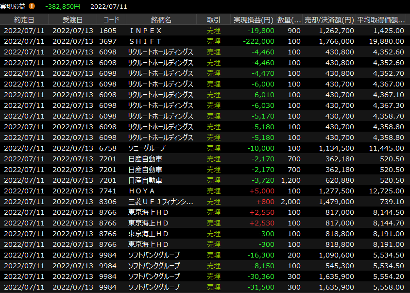 7/12(火)大幅安<デイトレ結果> 2022.07.12