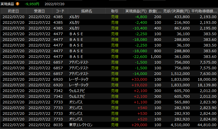 7/21(木)地獄のスパイラル<デイトレ結果> 2022.07.21