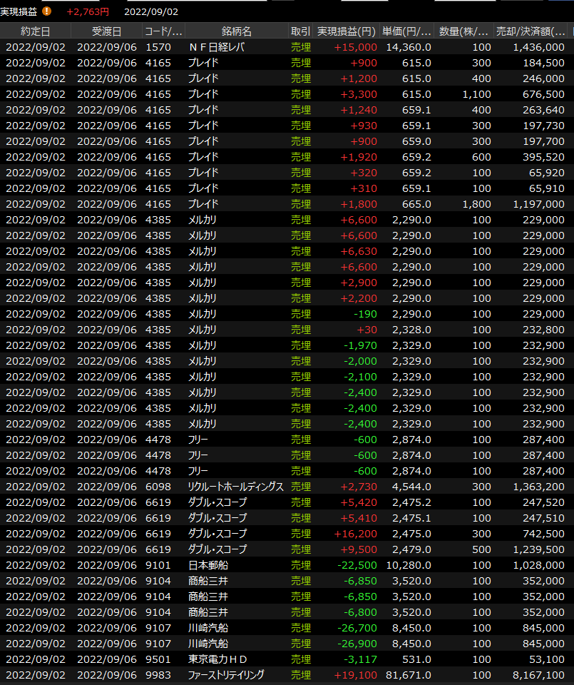 9/5(月)グロース個別祭り<デイトレ結果> 2022.09.05