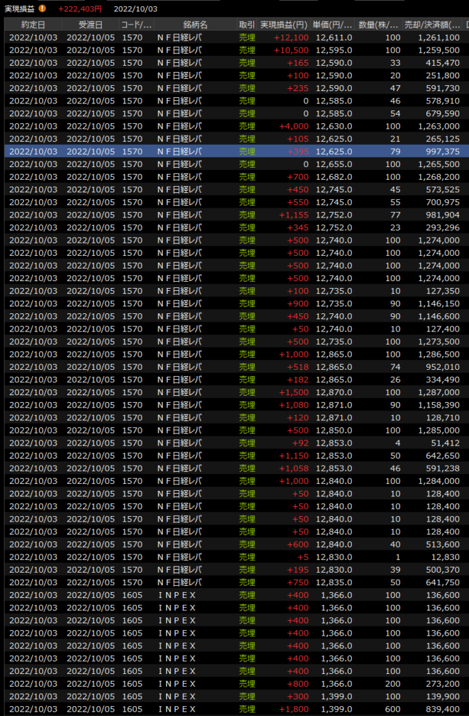 10/4(火)日本株強い<デイトレ結果> 2022.10.04
