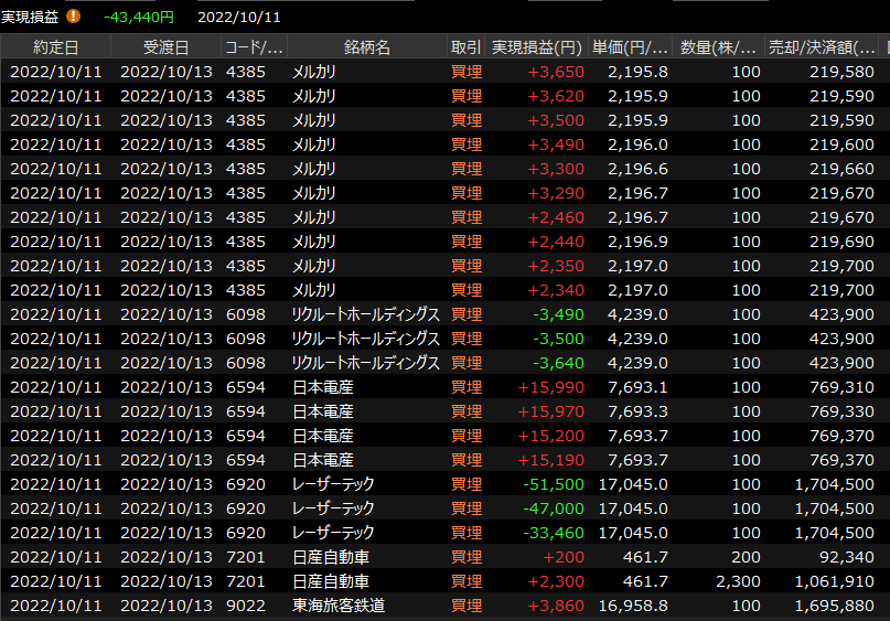 10/12(水)深追い厳禁<デイトレ結果> 2022.10.12