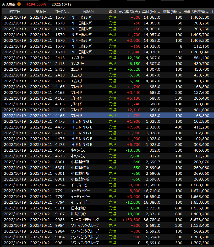 10/20(木)下手すぎ<デイトレ結果> 2022.10.20