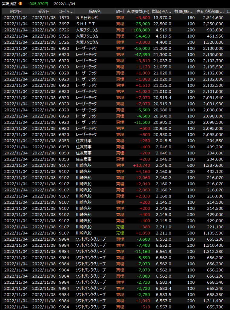 11/2(水)嫌な予感ってのはあたる<デイトレ結果> 2022.11.02