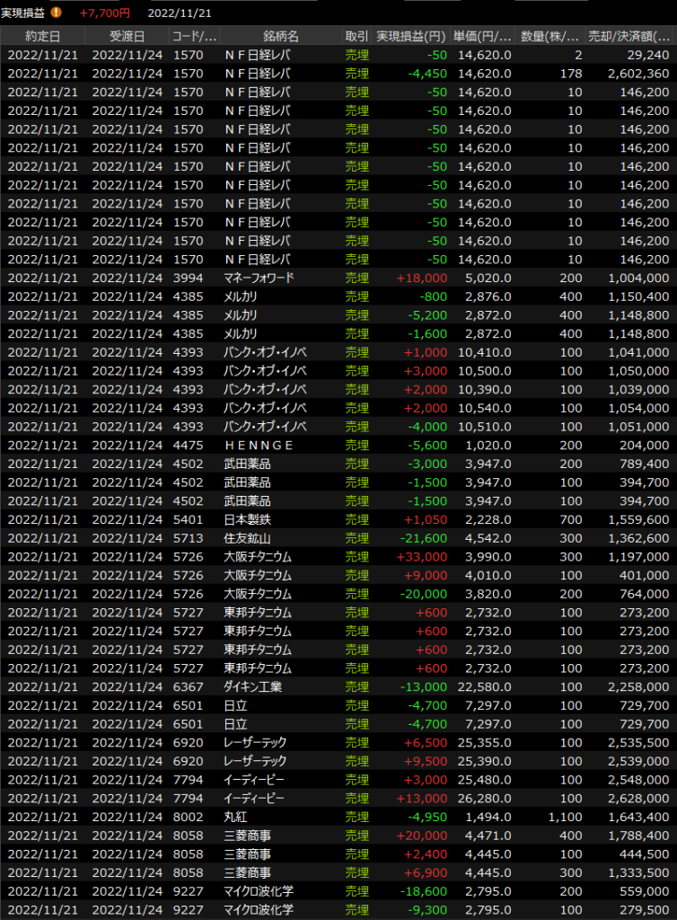 11/22(火)うまくいかない<デイトレ結果> 2022.11.22