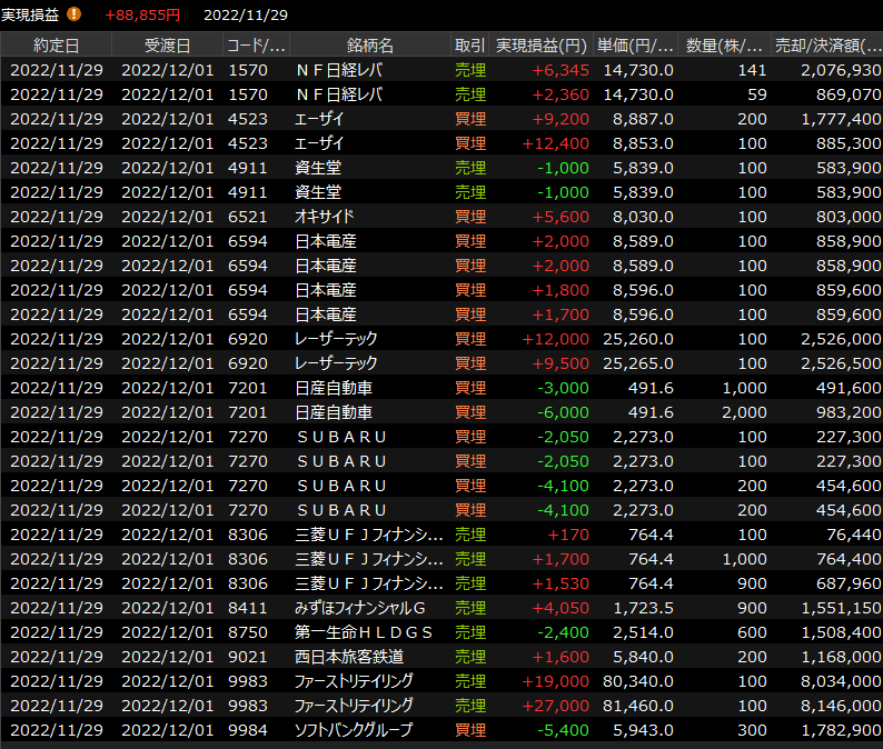 11/28(月)最悪<デイトレ結果> 2022.11.28